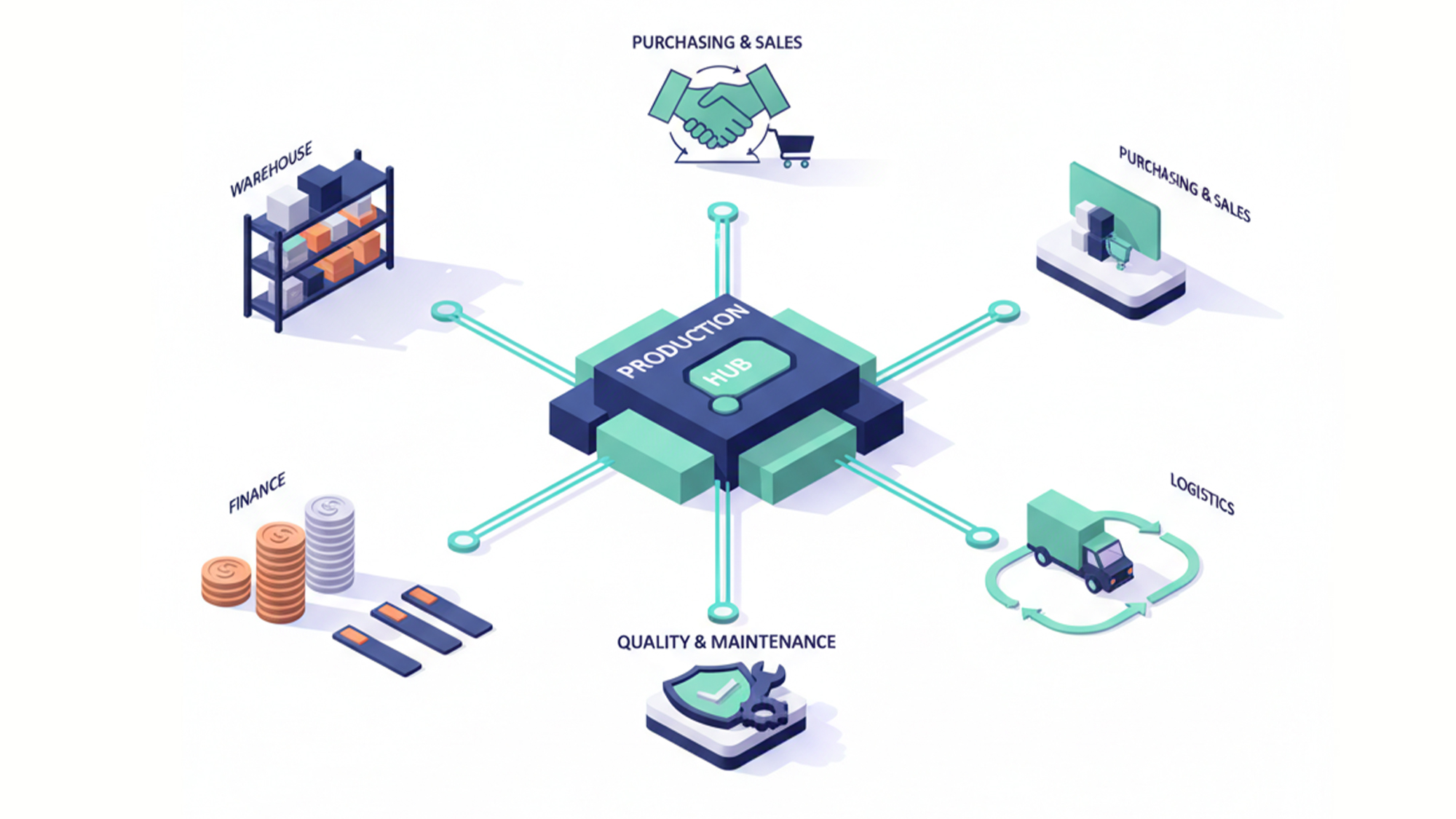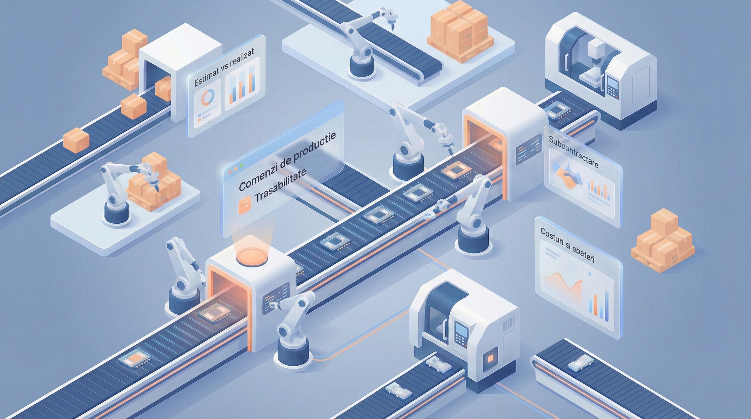 Un ERP dedicat producției conectează planificarea, materialele, execuția și costurile într-un flux unitar.
